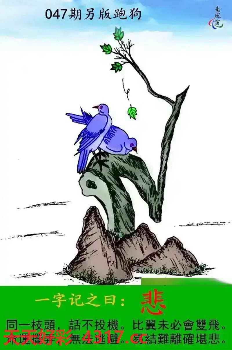 047期另版跑狗一字記之曰:【悲】 同一枝頭,話不投機。